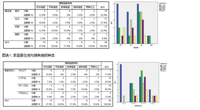 2.2 家庭居住地、月收入与家庭拥有拖把种类的相关分析
