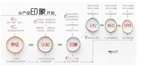 表征按照时间顺序大致分两个部分。第一初征,包括了以视觉为主的五感:形态(视觉)、色彩(视觉)、材料(触感)、工艺(触感),一般是消费者开始接触这个行业某品牌产品的时候;第二深征,包括使用体验相关的所有,一般是消费者有了该产品的体验或者是相关产品的体验,是建立消费者情感阶段。之前在《浅析设计的内在驱动力》谈到从便于认知到便于使用,也是谈表征的内容与过程,便于认知主要指产品五感感受,便于使用主要指产品体验感受。而这里的表征不局限于产品,而是企业所展现出来的所有。初征阶段如何更深远影响消费者显得尤为重要,而深征更是情感建立的桥梁。接下来就到认知步骤